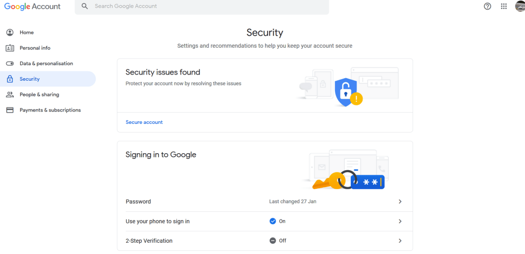Google menawarkan berbagai cara untuk mengamnkan akun kita. Nah, langkah pertama yang dapat kita atur ulang adalah menambahkan opsi untuk account recovery. Google menyediakan dua opsi, yaitu dengan alamat email lainnya atau dengan nomor telepon kita. Apabila kita melakukan account recovery dengan menggunakan email, Google akan mengirimkan email dengan link untuk mereset password kita. Nah, pastikan akun recovery Google yang dipakai adalah akun yang sering kita pakai dan berbeda dengan akun yang kita lupa passwordnya ya!